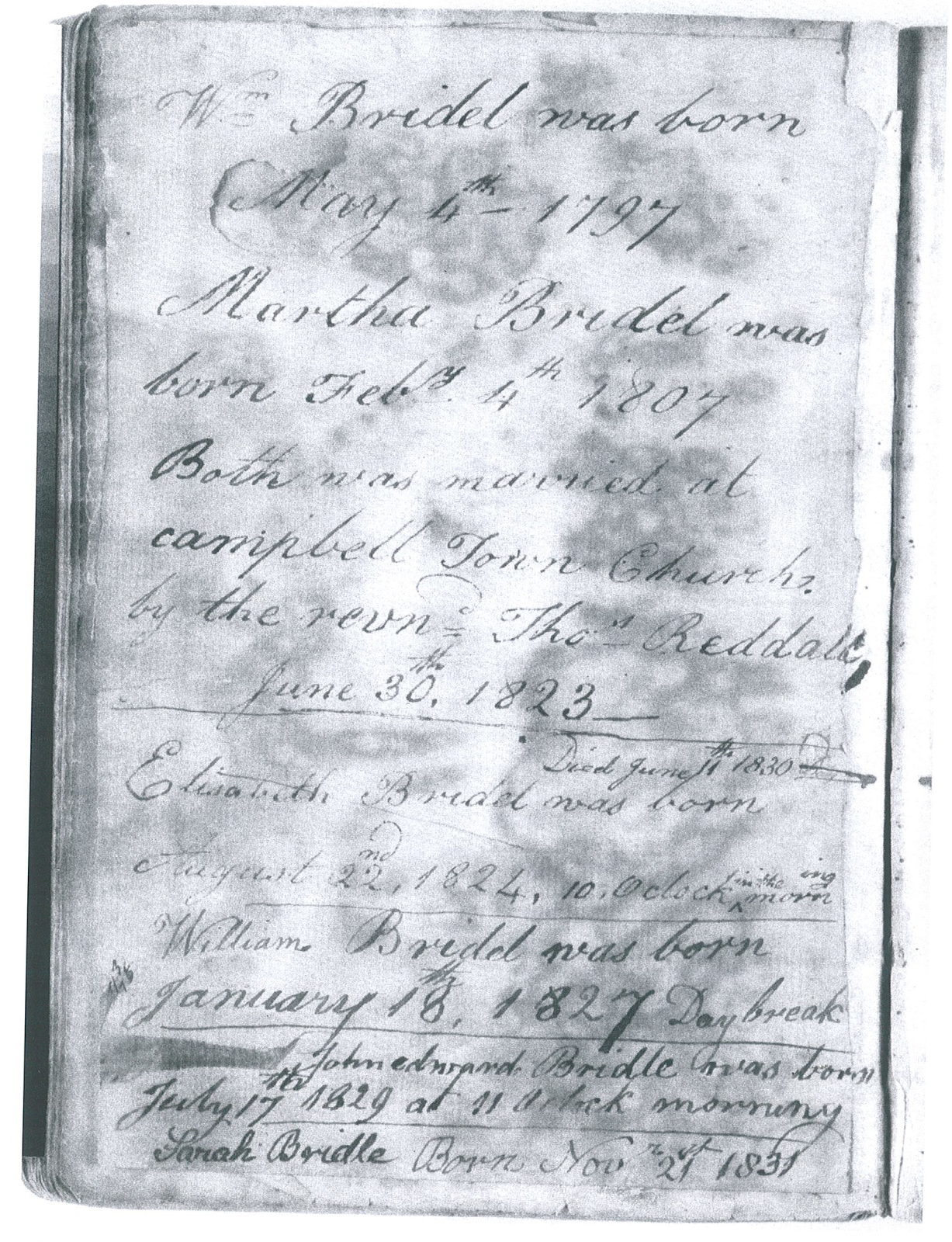 William BRIDLE was born on 4th May 1797 at